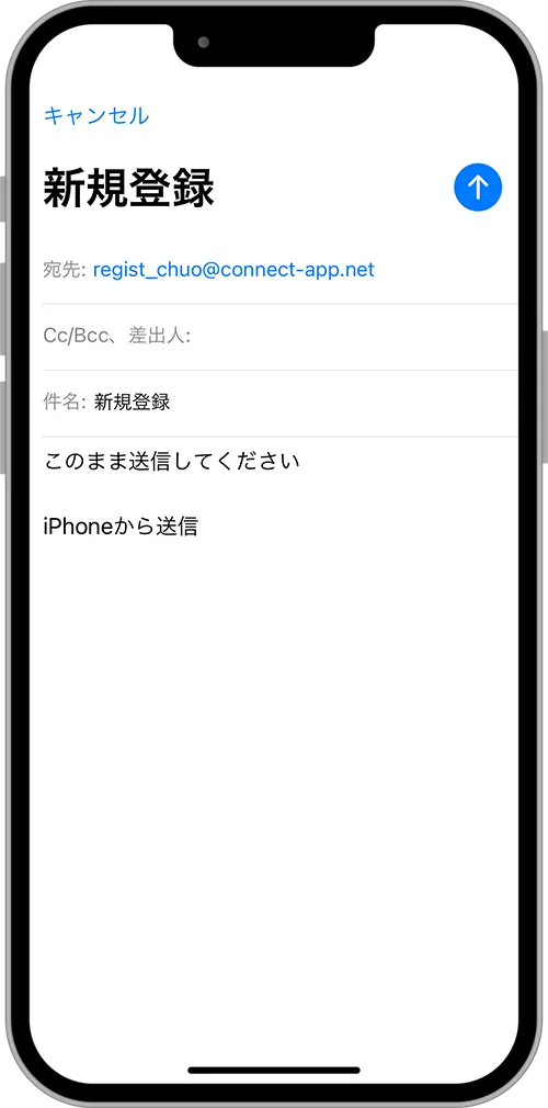 メーラーが起動しない場合はメールアプリから直接宛先を入力して空メールを送信してください。