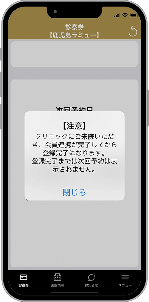 クリニックにご来院いただき、会員連携の手続き後、登録が完了となります。
